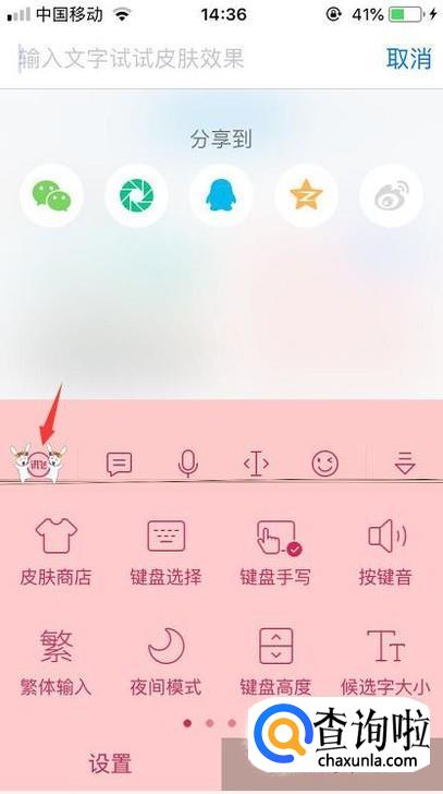 当点击输入法第一个功能,里面会出现很多选项,例如换皮肤、字体大小设置、夜间模式、按键音、繁体字设置等等。