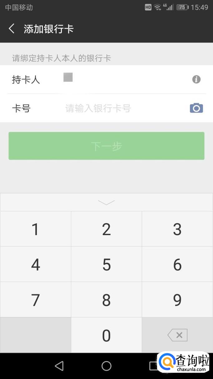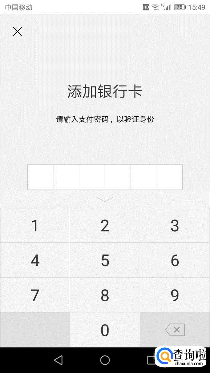 进入添加银行卡后,需要输入6位数的密码,然后持卡人和卡号进入下一步验证其他的信息,验证完成即可。