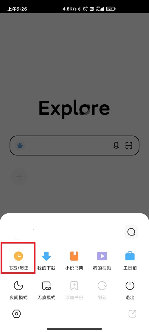 1、点击浏览器应用程序图标就可以打开浏览器,在界面找到书签的图标,点击它就可以进入书签界面。
