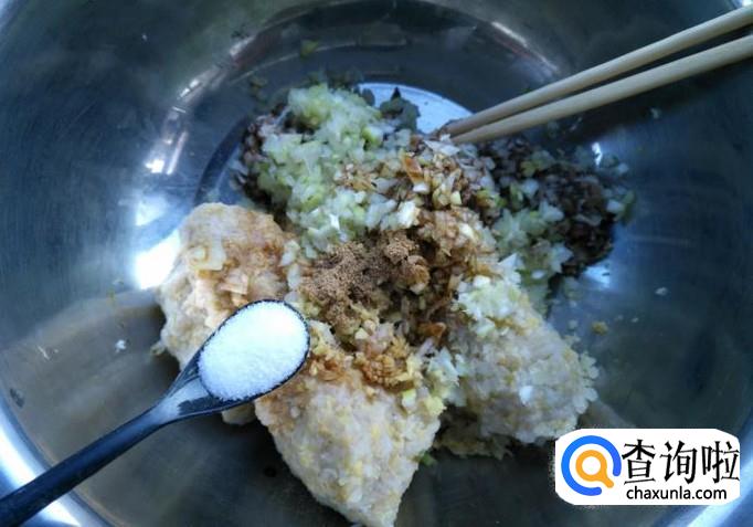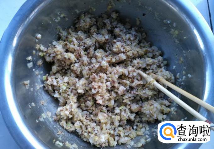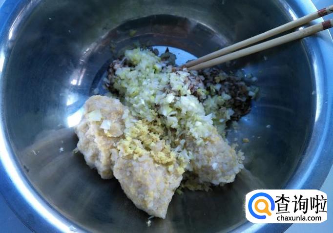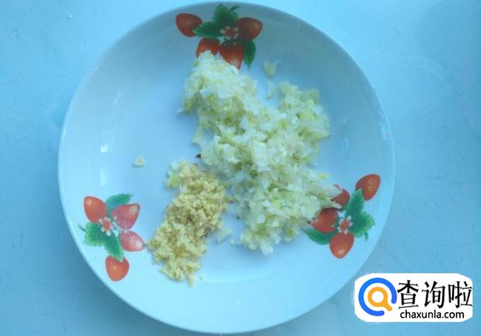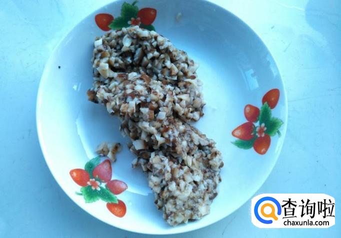 把香菇泡水洗净后放入开水中炒熟,然后剁成碎末状。
