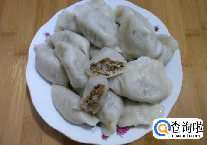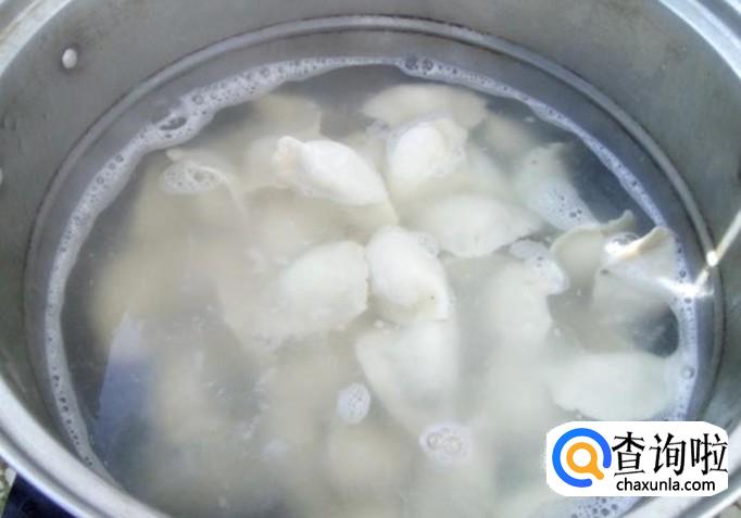 待饺子全部包完后,在蒸锅内放入1/4的水,点火烧开,水开后放入饺子,然后用勺子背压住饺子顺时针方向旋转,以防饺子粘锅底碎裂,然后每隔1分钟要搅动一次,直到所有饺子都浮在水面上,之后盖上盖子,开锅后可点一碗凉水再次煮开,饺子就熟了,最后捞出装盘就可以享用了。