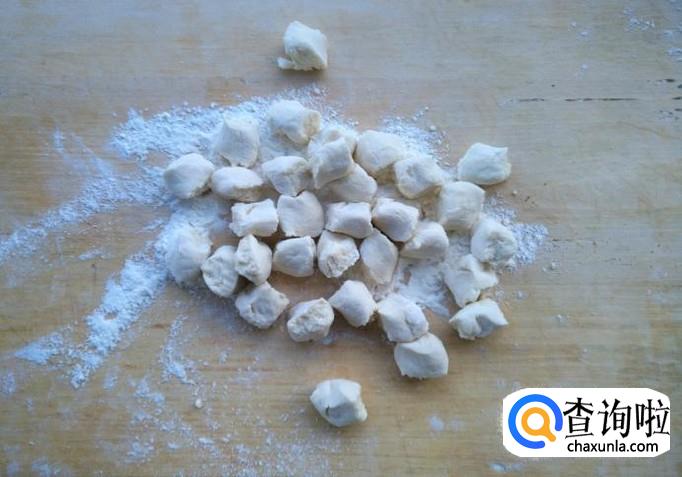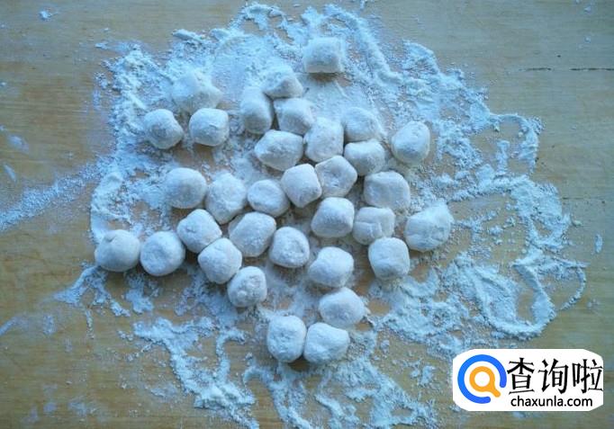 在饺剂子上撒上一些布面,然后用手将其滚圆。