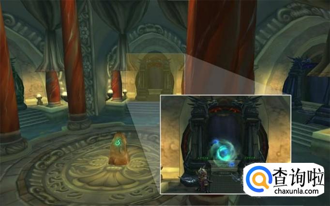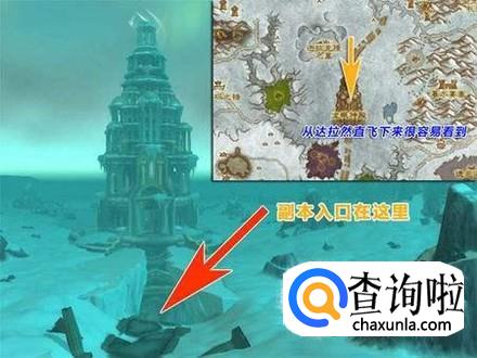 找到那个大裂缝之后毫不犹豫的跳下去,进入到龙眠神殿的地下,,正对着你飞入的门口的那个副本入口就是黑曜石圣殿副本。
