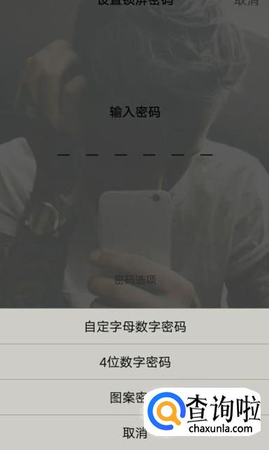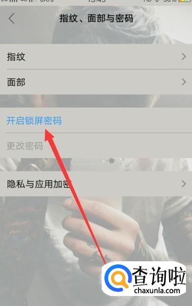 进入之后,点击“开启锁屏密码”,进入下一页面,如图所示。