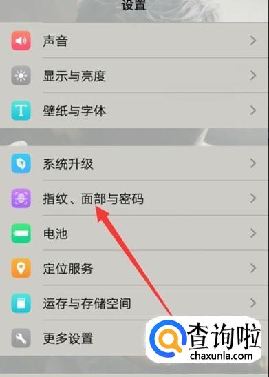 进入之后,找到“指纹、面部与密码”,点击并进入,如图所示。