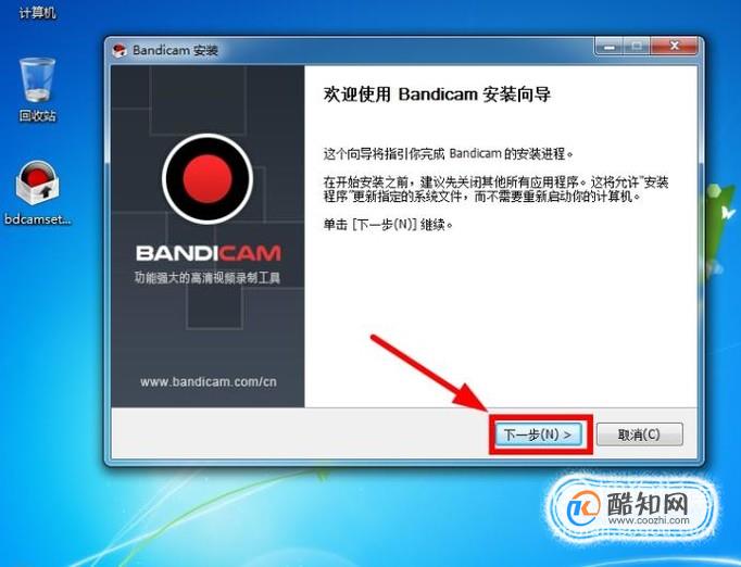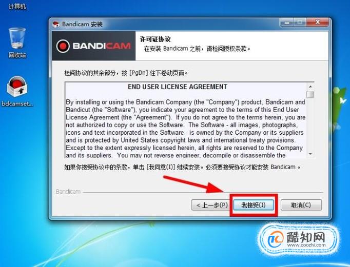 在Bandicam安装向导中点击“下一步”,选择“我接受”