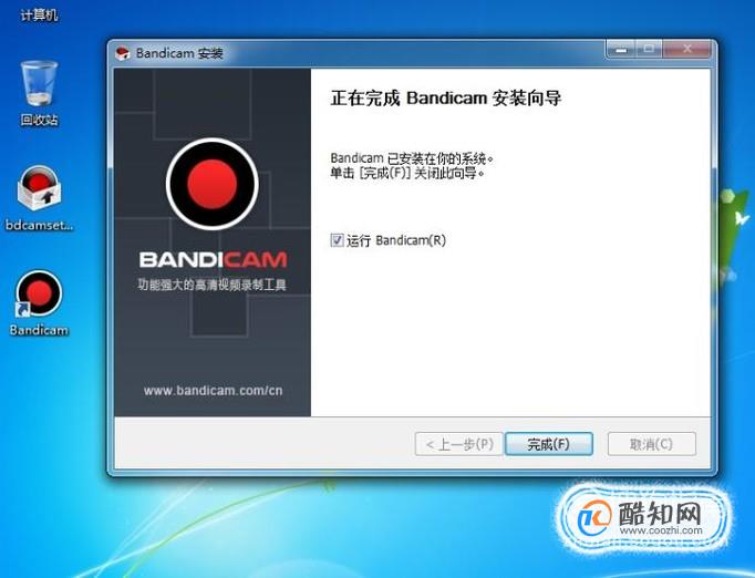 等待安装完成,完成后,勾选“运行Bandicam”,并点击“完成”