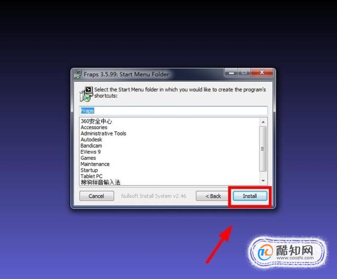 自定义好安装位置后点击“Next”,选择好安装名称后,点击“install”开始安装;