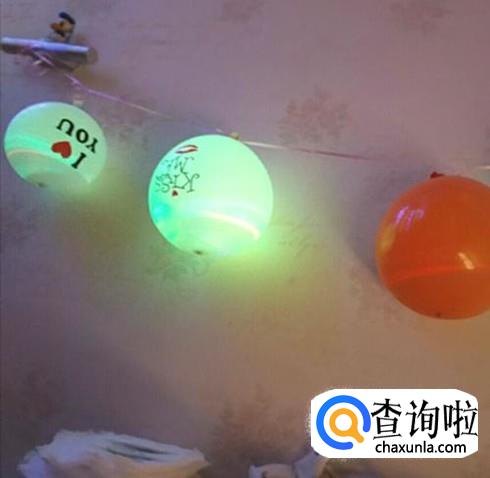 放入气球中,并吹气。接着将led灯放入气球中,接着将气球吹大来,这样就能看到灯在里面一闪一闪,非常漂亮了。然后在末尾的地方打个结即可,固定好。