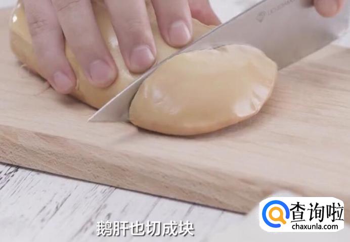 再将鹅肝切成块。