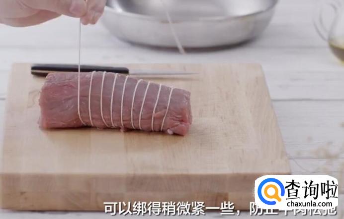 可以绑的稍微紧一些,防止牛肉松弛。