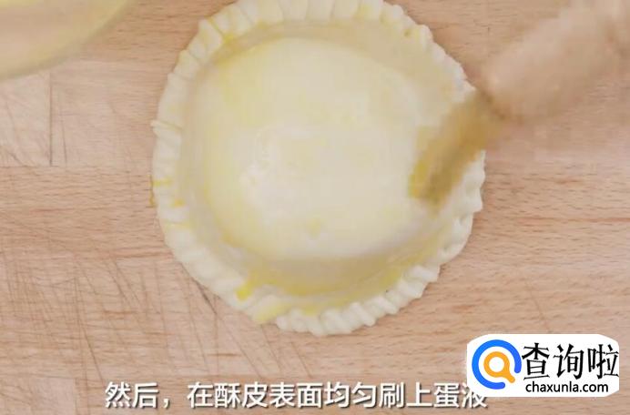 然后在酥皮表面上均匀刷上蛋液。