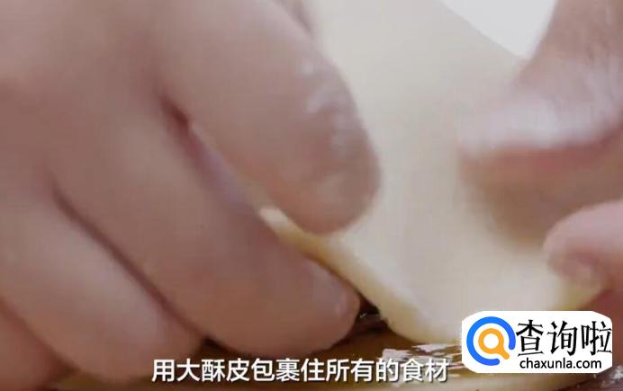 再用大酥皮包裹住所有的食材。