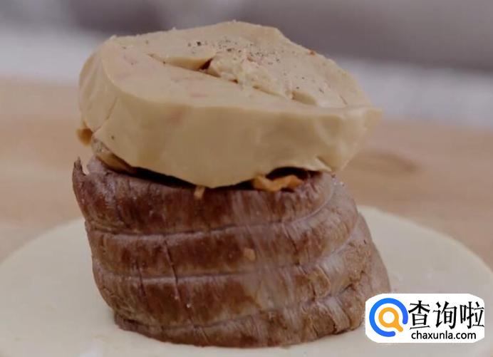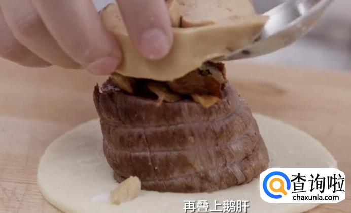 再叠上鹅肝。