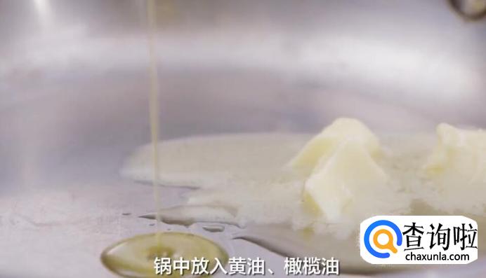 锅中放入黄油和橄榄油。