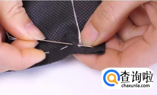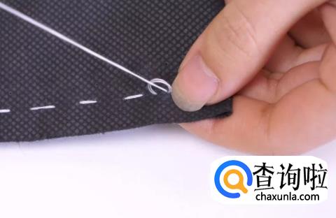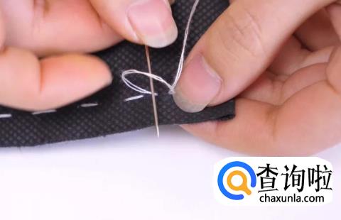 我们缝好最后一针后,倒退一个较小的针距入针。