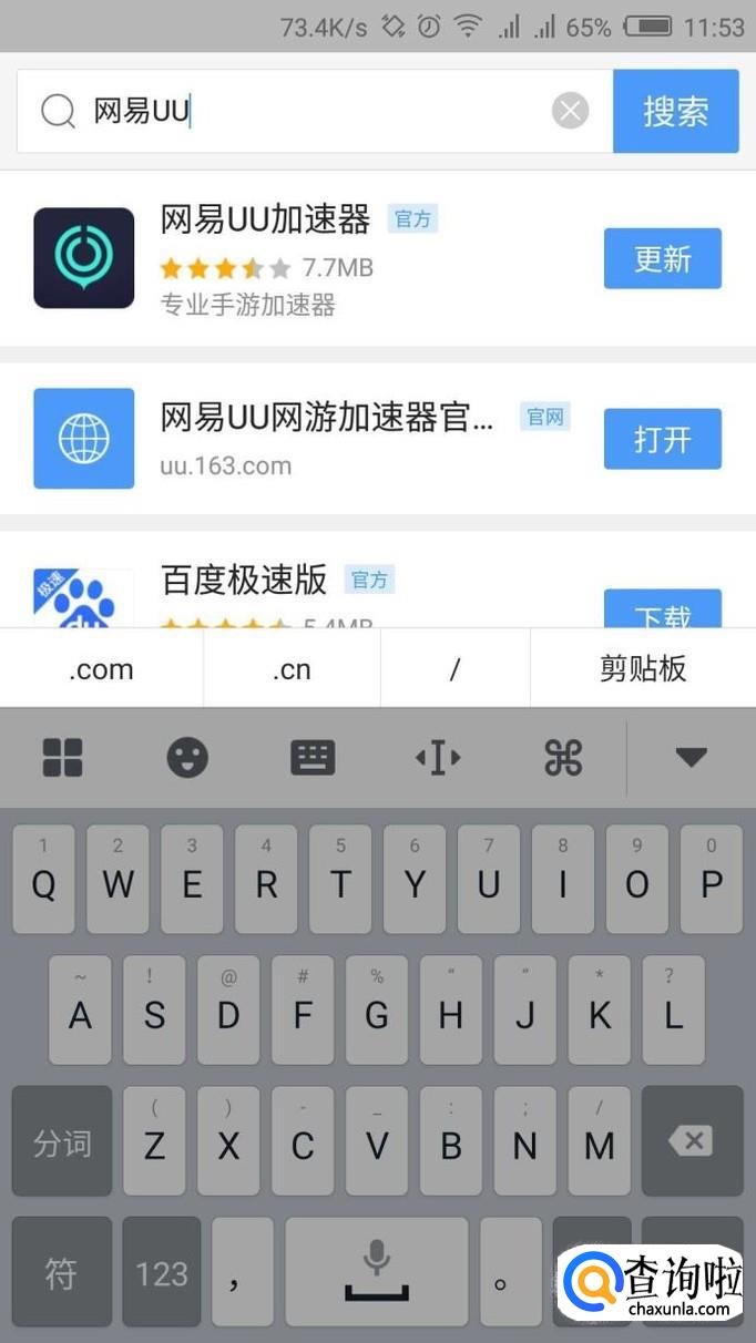 打开浏览器或者应用商店搜索“网易uu”,然后就会出来下载界面,点开官网即可。小编这里示范的时候是用浏览器下载的,注意:这里是因为我下载过,所以只需要更新就ok了。