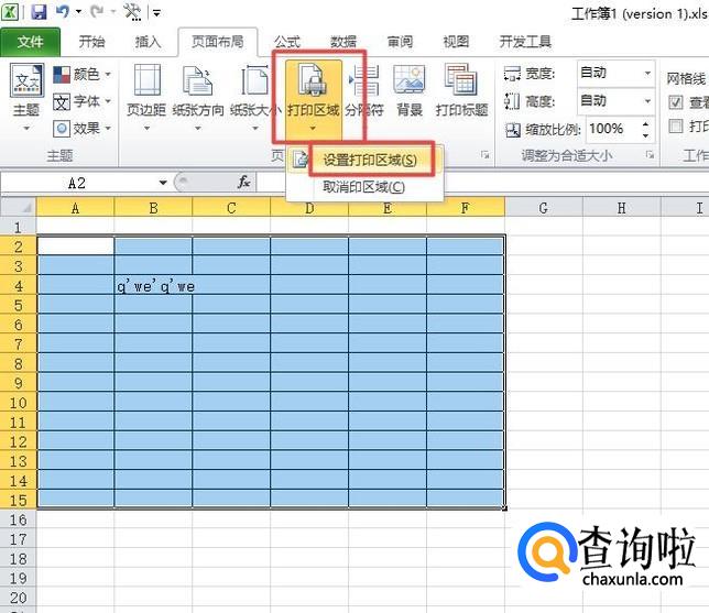 然后我们点击打印区域,弹出的界面,我们点击设置打印区域;