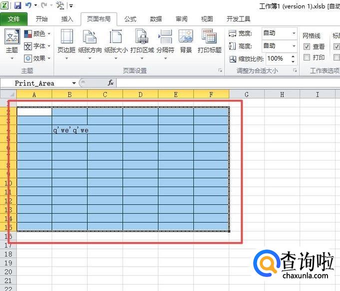 之后我们选中我们想要打印的区域,之后我们点击页面布局;