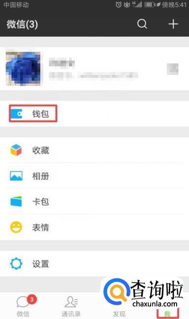 首先,我们打开我们的手机,然后我们登录微信,之后我们点击我,然后我们点击钱包;