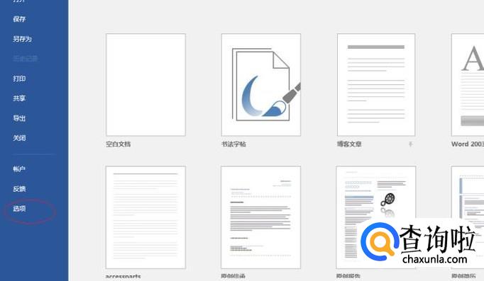 点击功能区"文件"标签,如图所示。唤出系统文件菜单,选择界面左侧下方"选项"项。