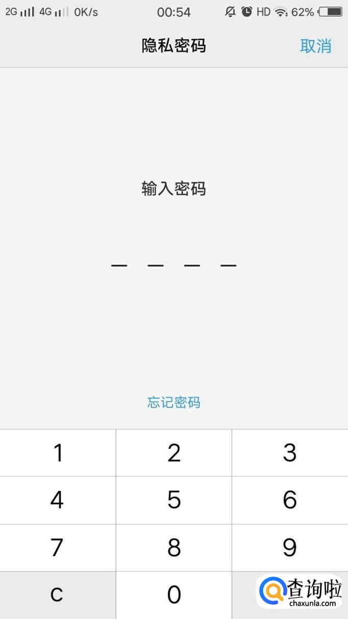 在桌面空白的地方,两指分开向两边划,进入“隐私密码”页面,如图所示。