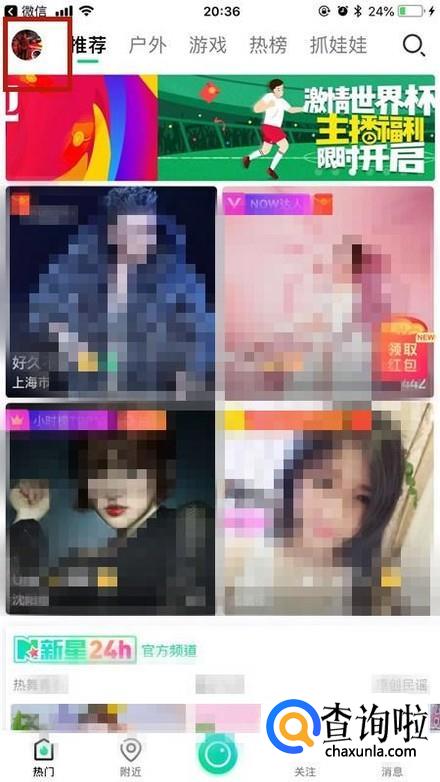 然后点击屏幕左上方的个人图像,如下图所示。