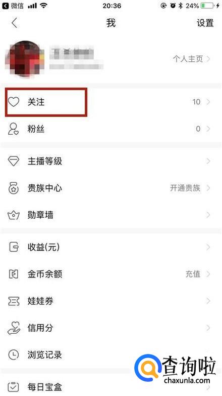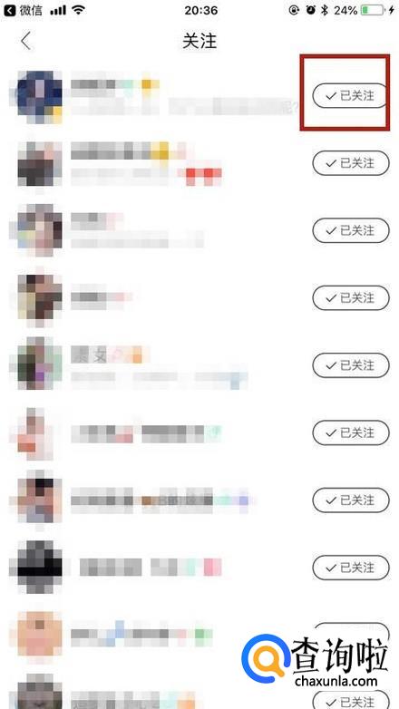 然后点击要取消关注的用户注册的已关注,如下图所示。