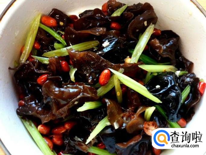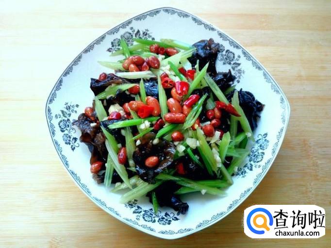 香芹 适量,木耳 适量,花生米 适量。