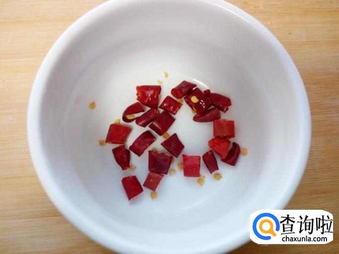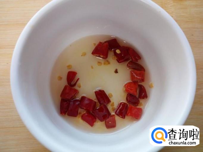 红干椒用水清洗干净,控干水分,切成小段。蒜切成末备用。