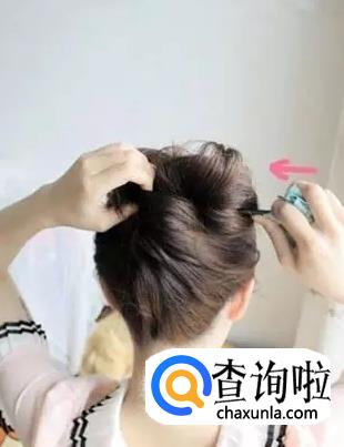 再绕着发簪往下, 如果头发较长的亲们要绕着发簪卷两次哦。