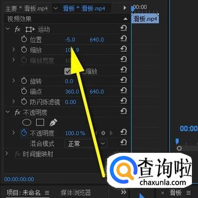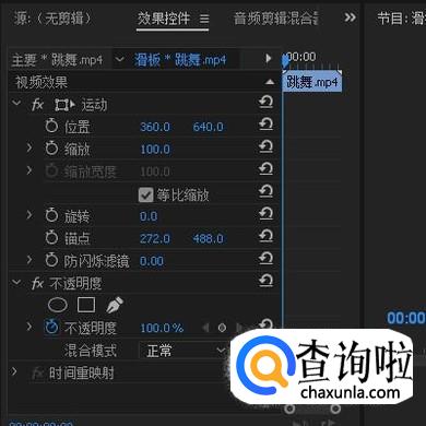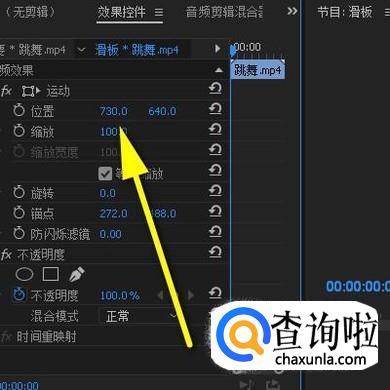 再选中视频轨道1的视频,同样打开效果控件的面板,把X轴向的参数减少。