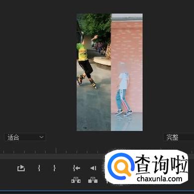 接下来,按下播放键,看节目面板这里,可以看到两段视频分屏播放画面。