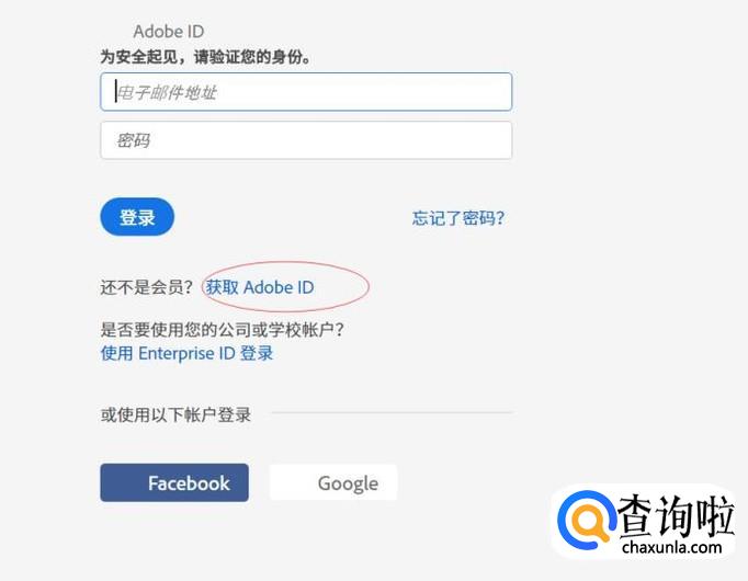 浏览器访问adobe 账户的官网https://accounts.adobe.com,进入登陆页面,如下图,点击获取adobe id