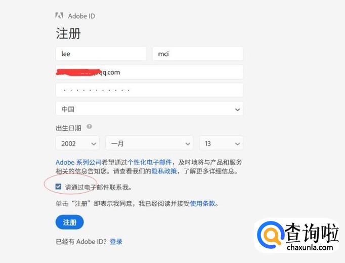 将所需要的信息填写完整,别忘了勾下面的 通过邮件联系,点击注册