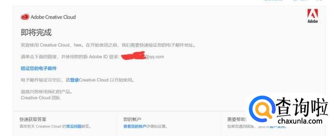 点击邮件中的 验证您的电子邮件,将会跳转到一下页面,出现下图所示信息就代表可以使用adobe服务了