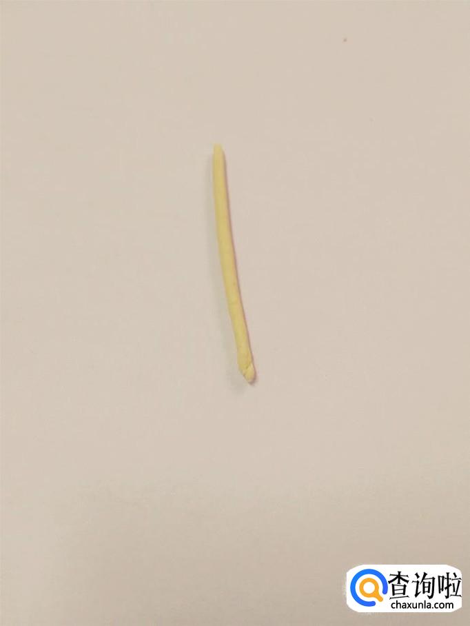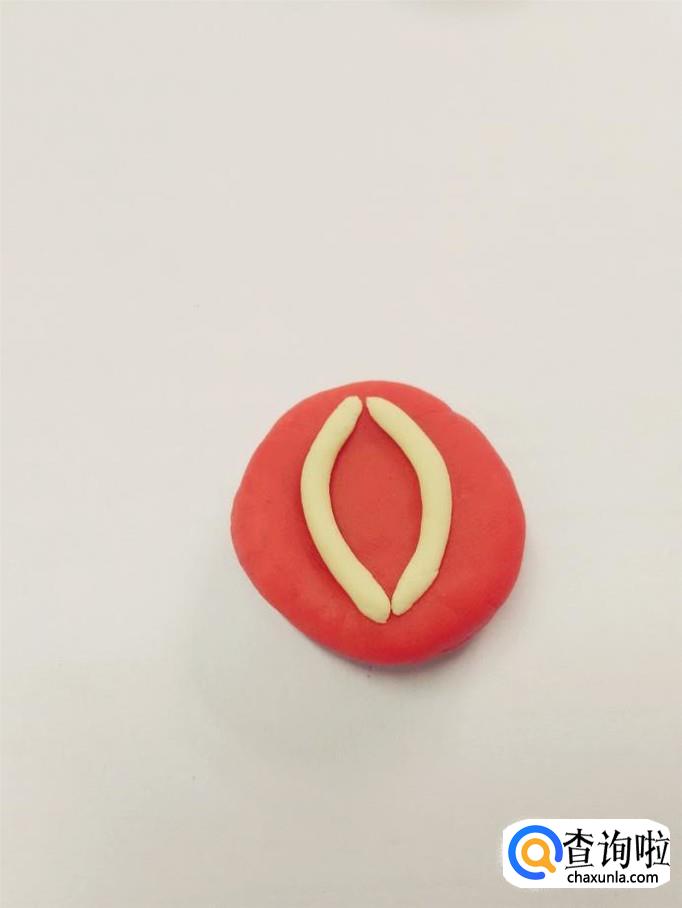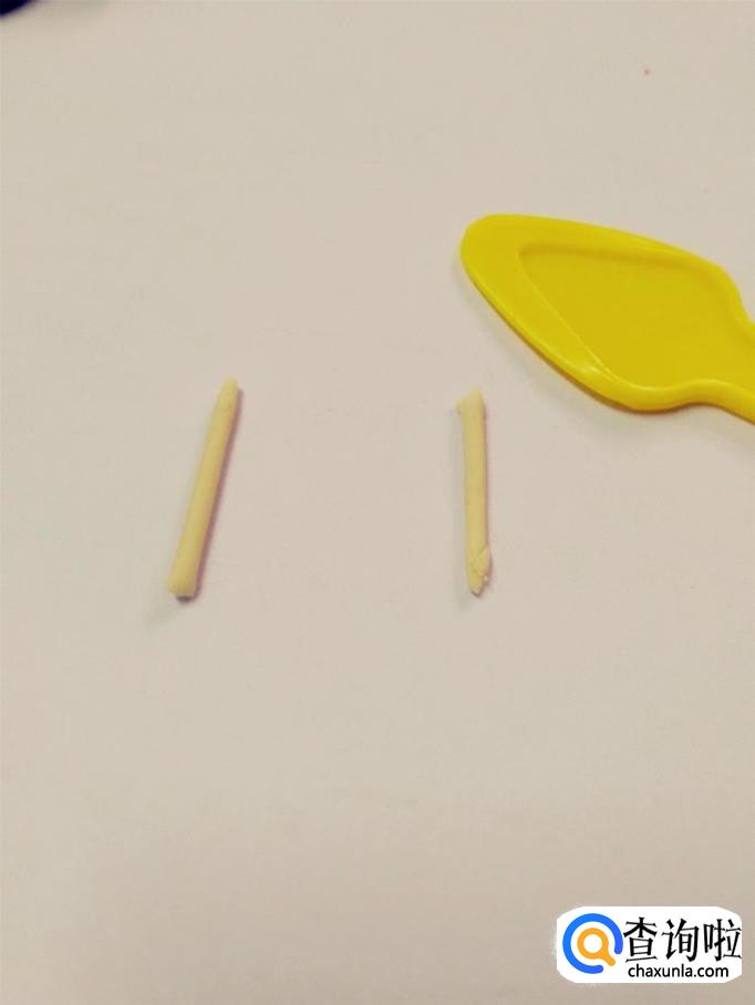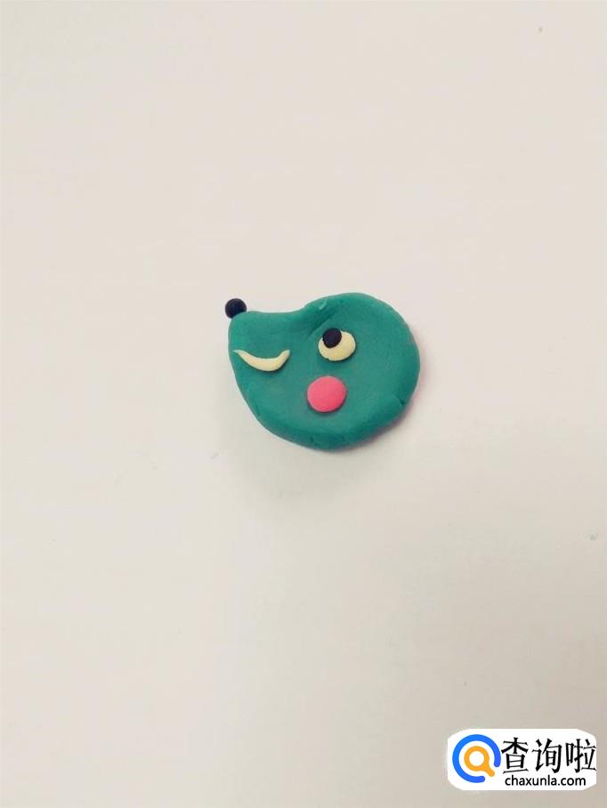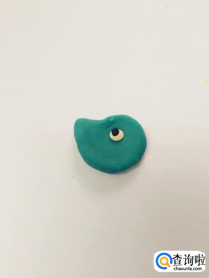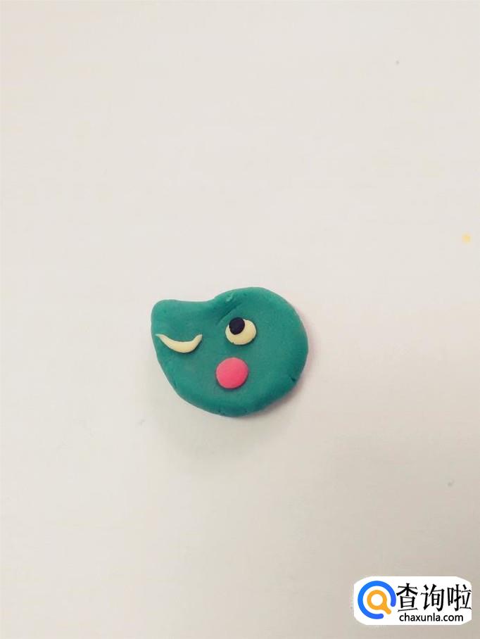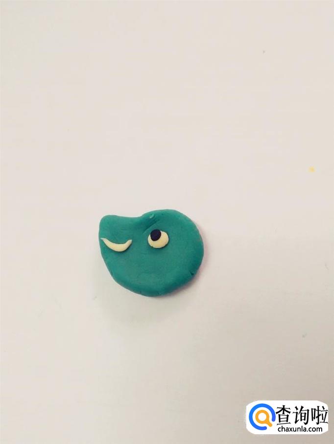 再搓一个白色的细条,粘在眼睛左边,当嘴。