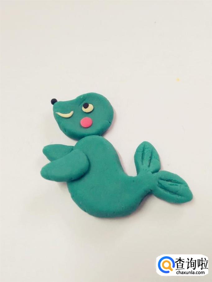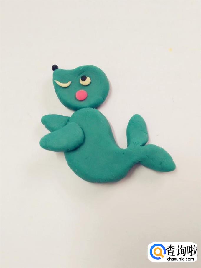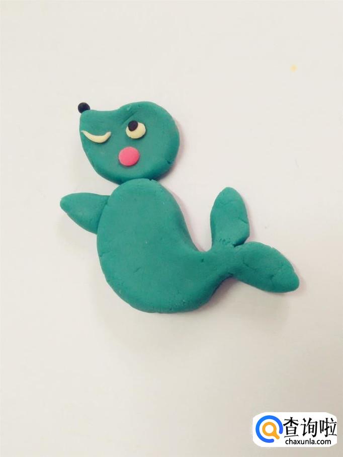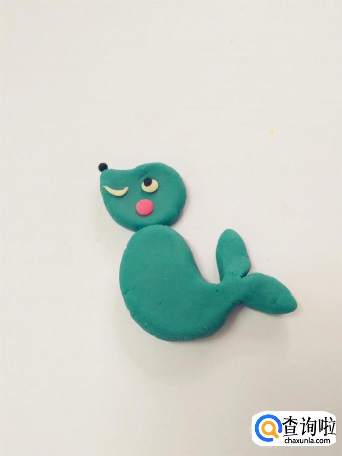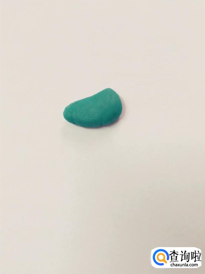 用蓝色彩泥捏一个弯弯的小水滴形状,当海豹的头。