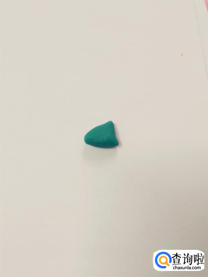 用一块蓝色,捏成三角形,粘在身体的左侧,当它的前肢。