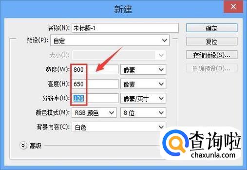 打开ps之后我们按下快捷键Ctrl+N键,在弹出的新建对话框内设置参数如图所示: