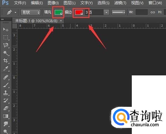 选择钢笔工具,然后在上面的属性里设置填充色为绿色,设置描边颜色为红色,如图所示: