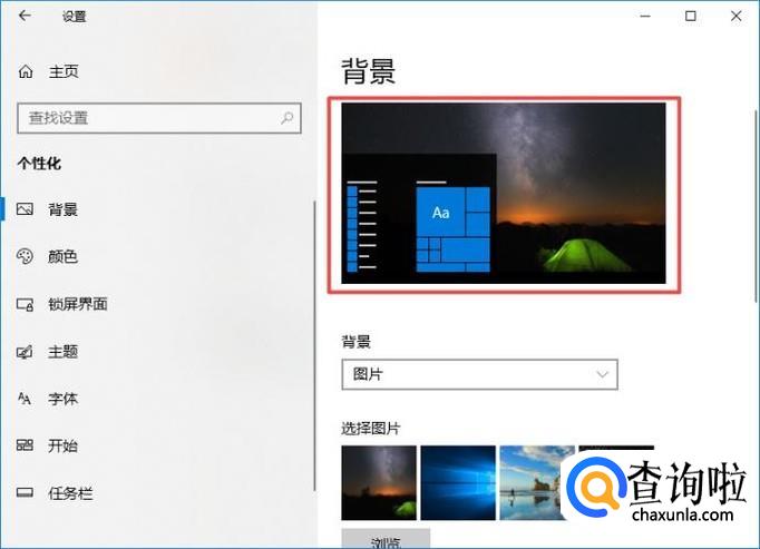 弹出的界面,我们可以看到系统目前的登录界面的背景图片如图所示,我们想要更换的话,可以点击下方的图片;