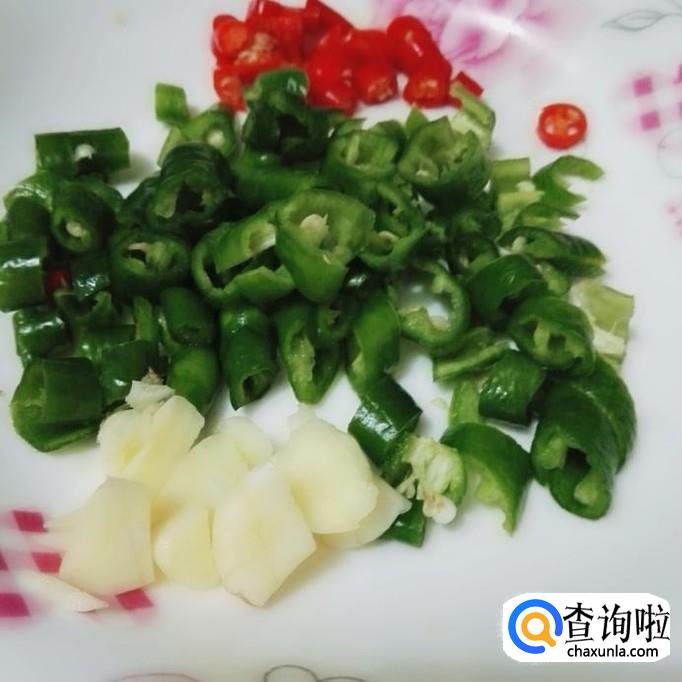 把配料处理好,青红椒都切成小段,大蒜籽切成片。