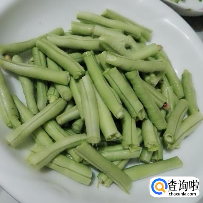 长豆角摘掉头尾,再掐成段备用。
