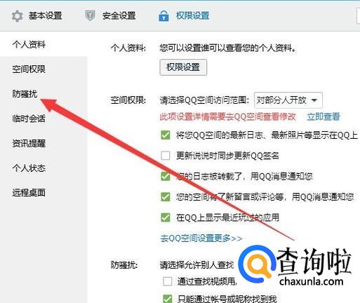 切换之后,点击“防骚扰”,进入下一页面,如图所示。