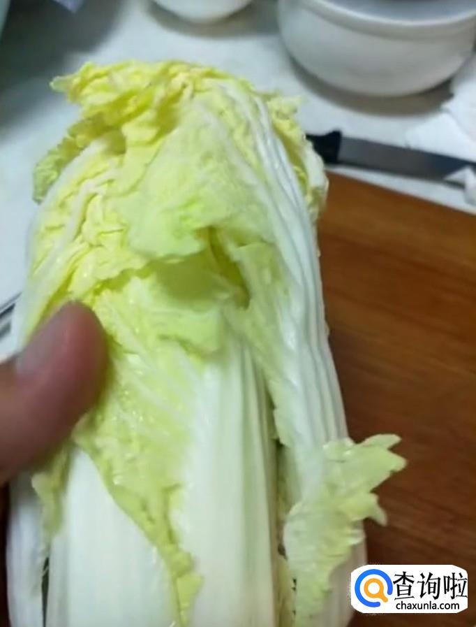 首先我们将白菜外皮剥除,留下心的部分,把它清洗干净,控干水分
