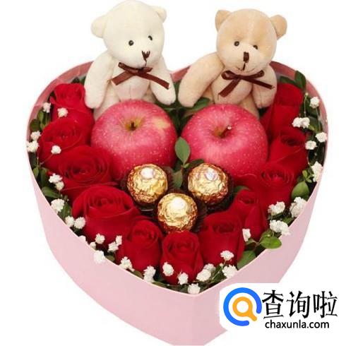 如果是送给女朋友的话,那自然要更用心了,可以买一个像图中那样的盒子,里面摆上玫瑰花、巧克力、苹果,女朋友一打开,肯定特别惊喜。