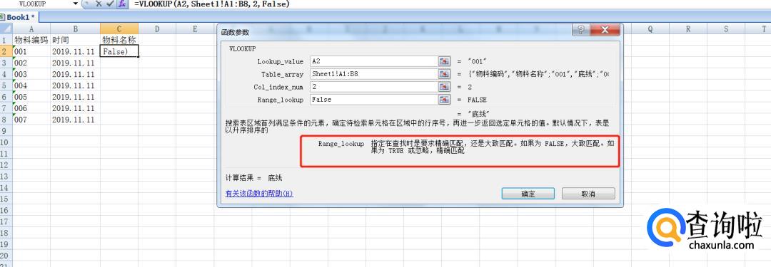 第四个数据。我们可以看一下框起来的地方对这个函数有解说,而我们的操作目的,最终结果是要精确匹配的,因此我们将第四个数据填为【False】。