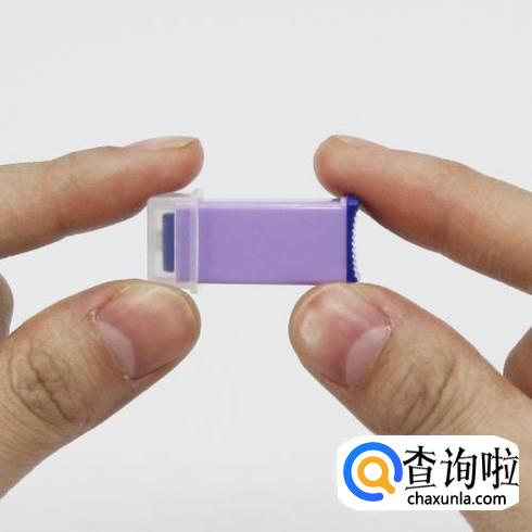 血糖仪插入试纸。首先插入测血糖的试纸,如果看见它上面有一滴血的样子在闪的话,就说明已经可以使用了。