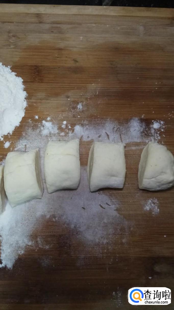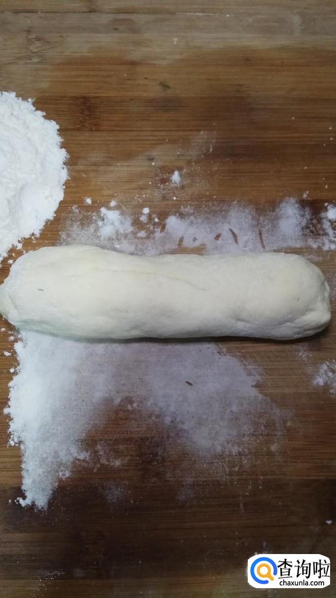 等待面团发酵至两倍大,一般需要两三个小时,如果是冬天的话时间会久一些,然后再将面团揉好,搓成圆柱体,分成小剂子。